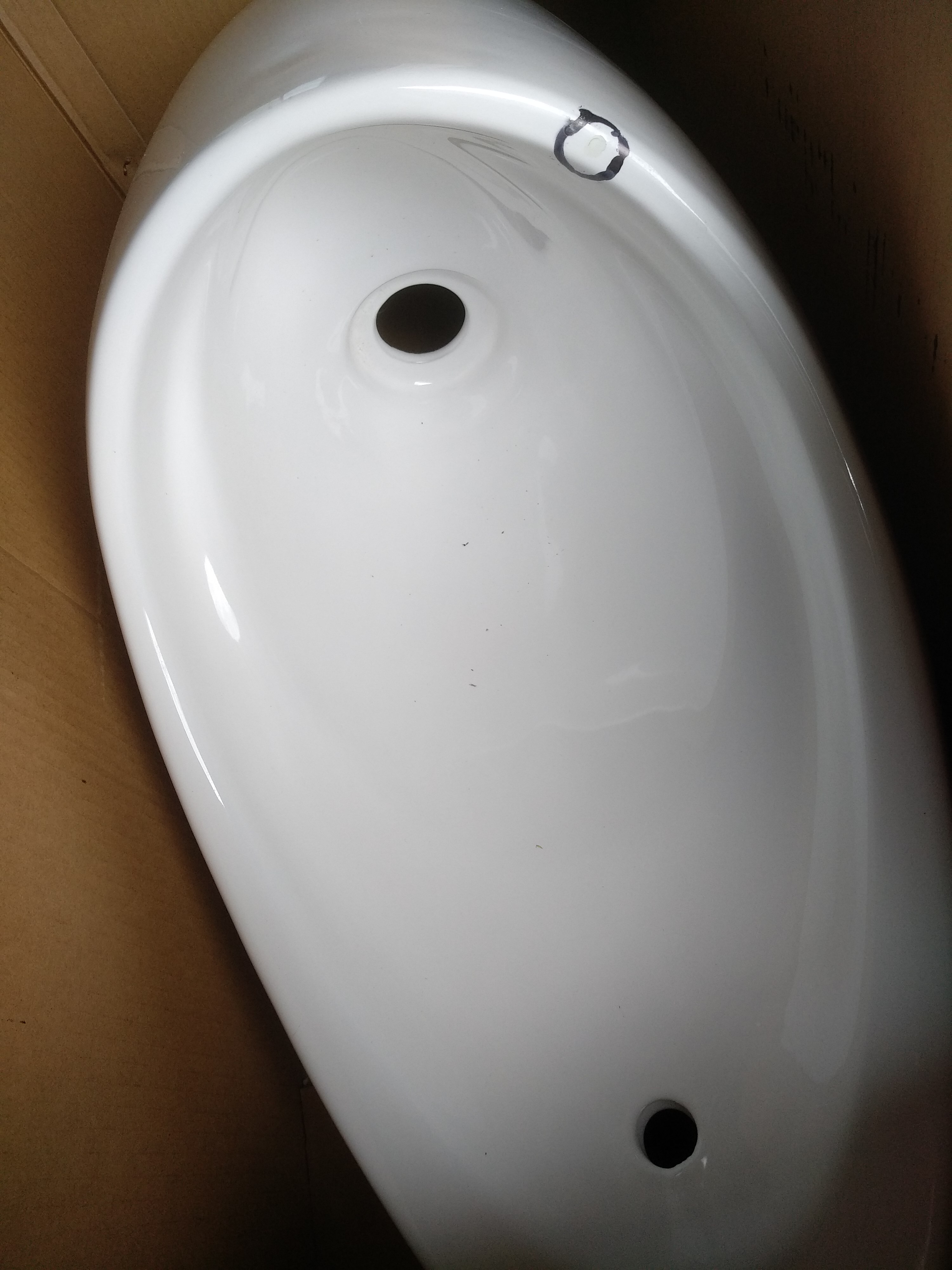 Уценка связана с небольшим круглым сколом на ободке писсуара в верхней правой его части.