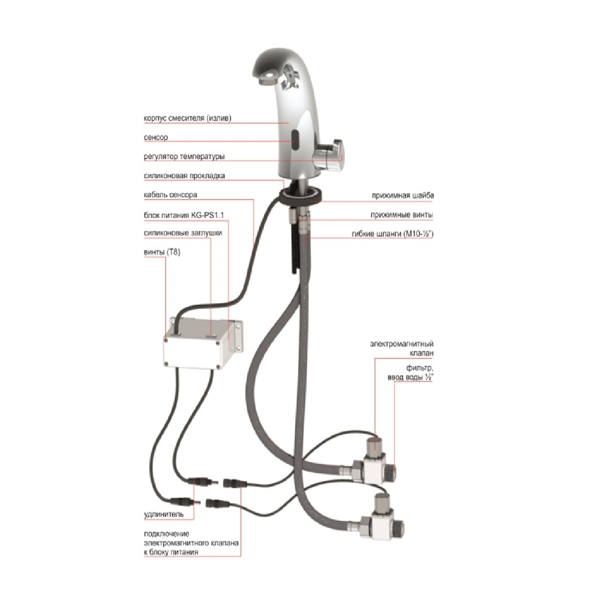 - Удлинитель электромагнитного клапана 2 шт. 4. Блок питания KG-PS1.1 - 1 шт.