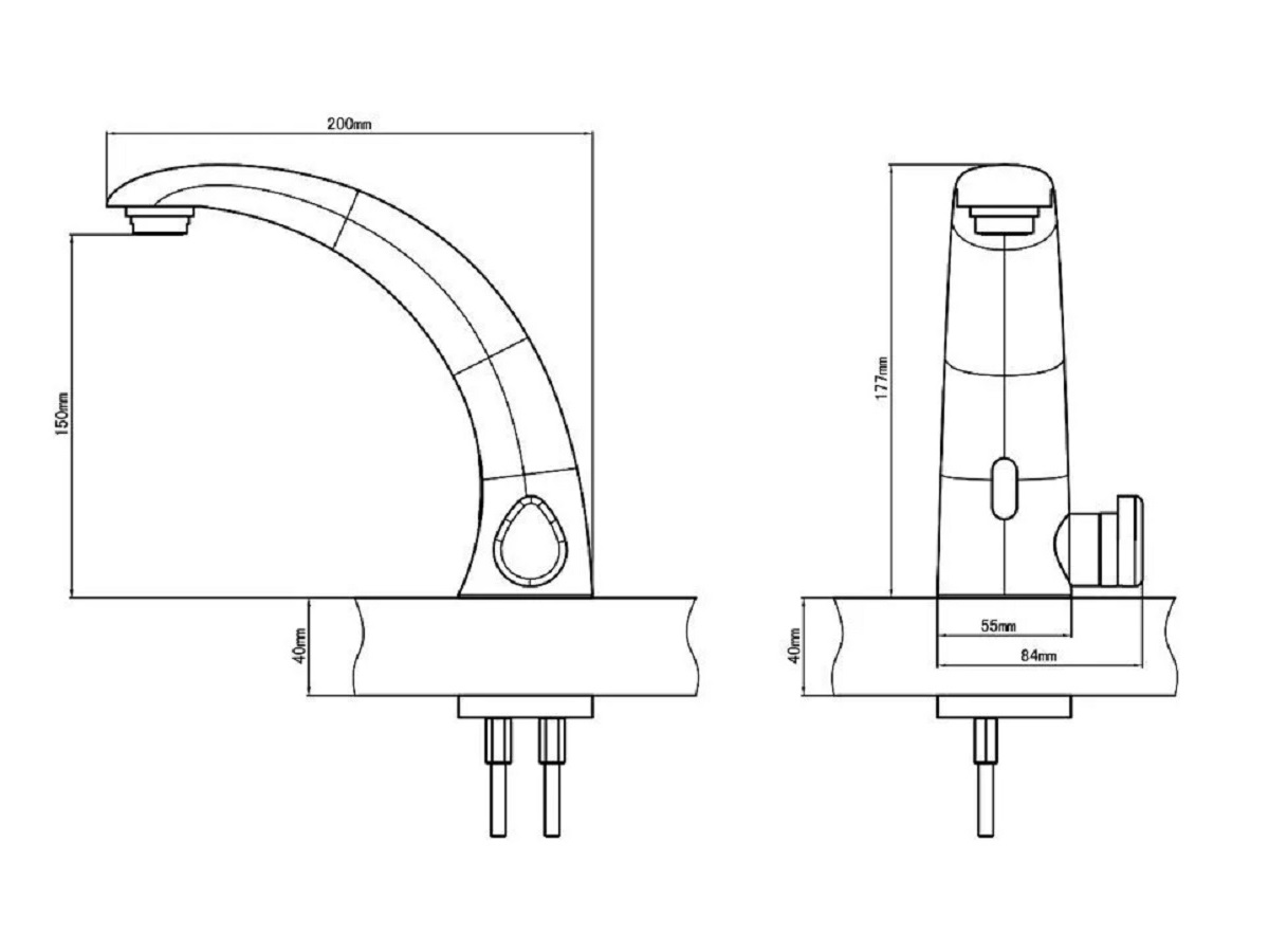 Длина излива - 200 мм