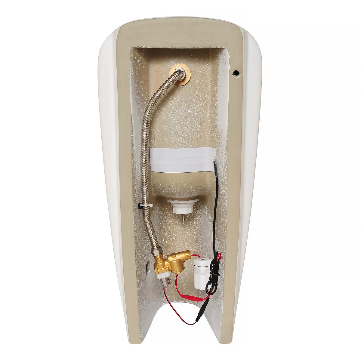Скрытый сенсор постоянно отслеживает появление жидкости в чаше писсуара. После использования писсуара производится автоматический слив воды из форсунки.