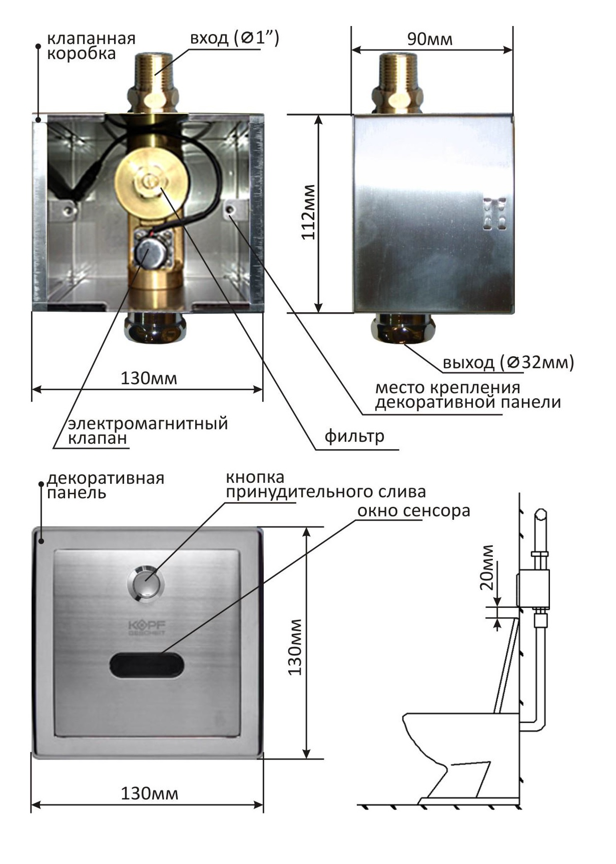 Устройство автоматического слива воды для унитаза Kopfgescheit KG7431DC сконструировано и выпускается по современной технологии, которая гарантирует высокую эффективность и безопасность в эксплуатации, обеспечивание комфорт и гигиену при использовании в ресторанах, кафе, гостиницах, врачебных кабинетах, больницах, бюро, производственных мастерских и пр. Устройство оснащено инфракрасным сенсором.